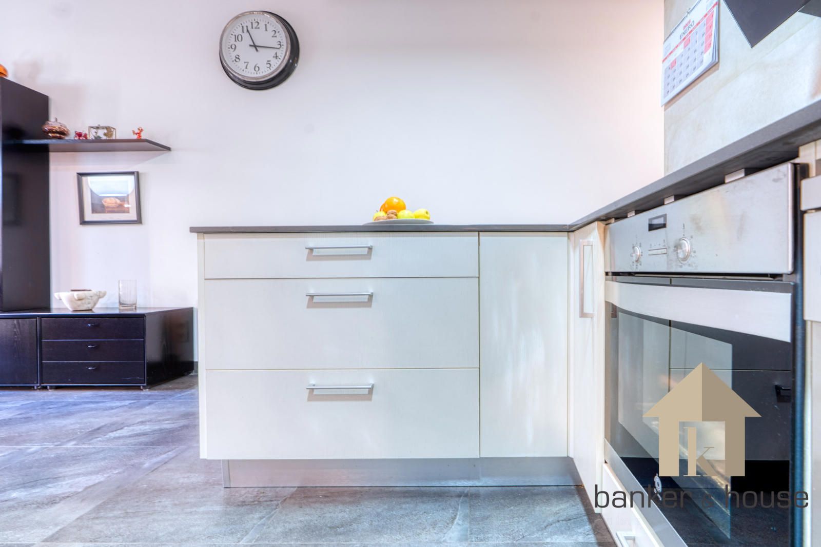 La cocina se integra en la vivienda con una disposición práctica y contenida. El mobiliario, de líneas rectas y acabado claro, se organiza de forma funcional, con encimera continua y electrodomésticos integrados. La distribución favorece el uso diario sin interferir en la continuidad del espacio principal, manteniendo una lectura limpia y coherente.