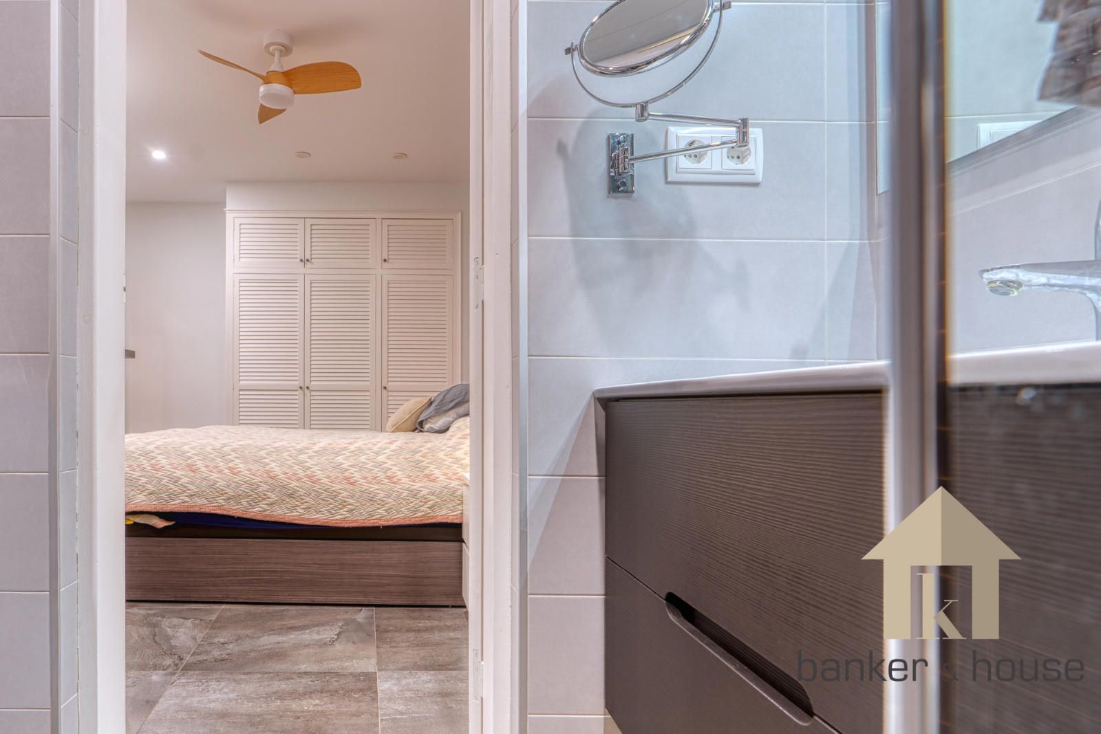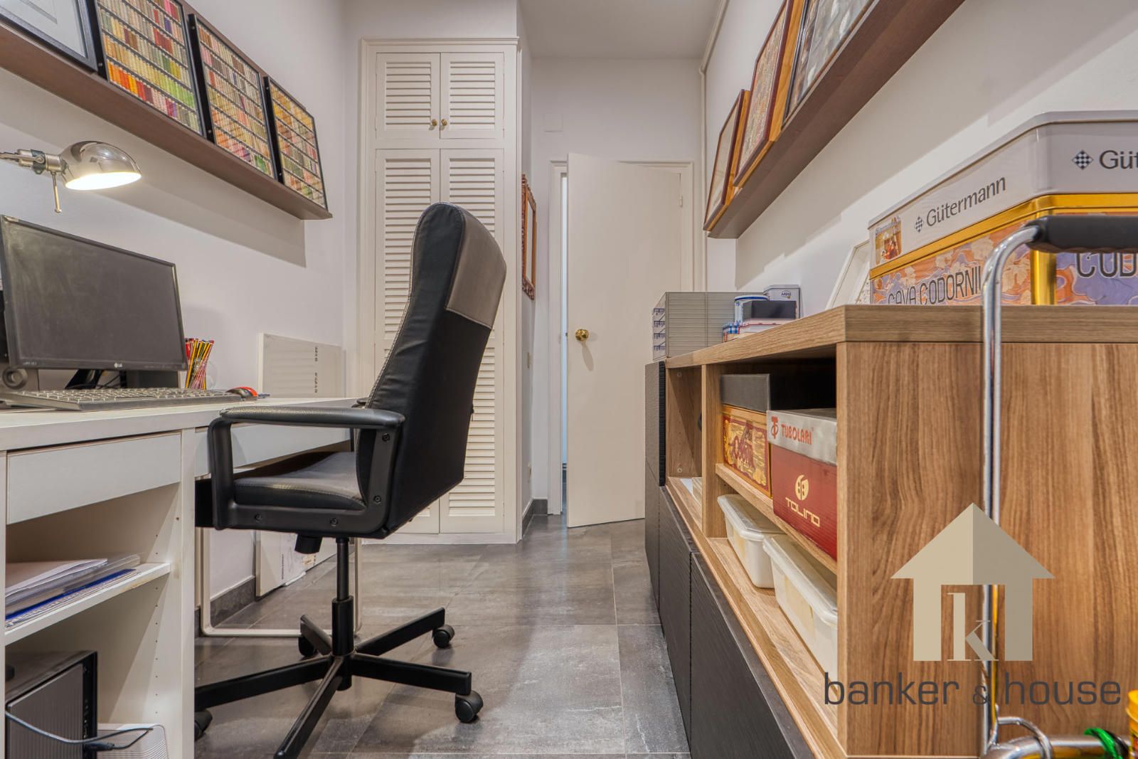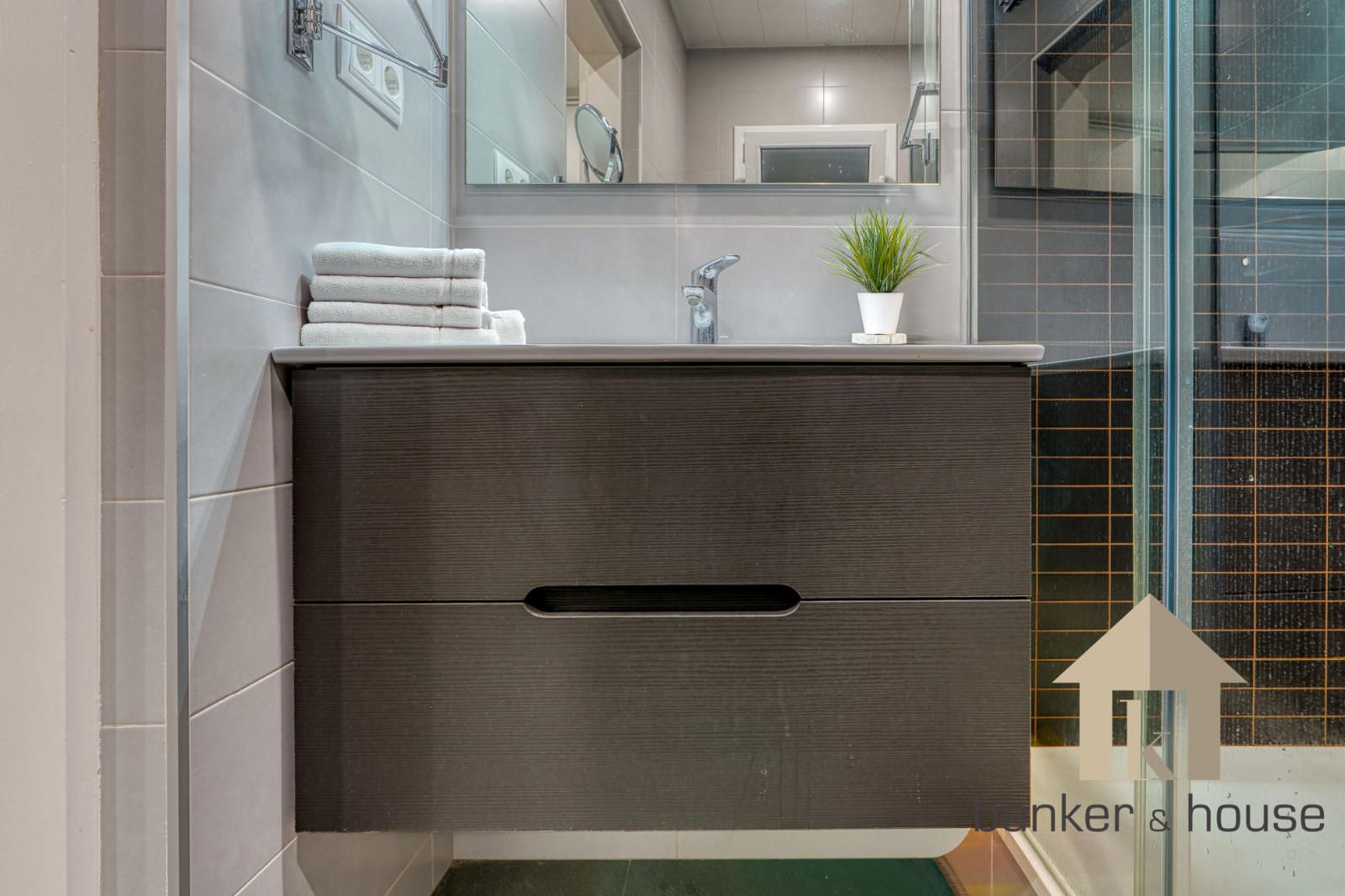 La vivienda dispone de dos dormitorios. El principal se plantea como una estancia recogida y bien proporcionada, con armarios empotrados que permiten mantener el espacio despejado. El baño vinculado al dormitorio incorpora plato de ducha, mampara de vidrio y mueble lavabo suspendido, con una disposición clara y actual. El segundo dormitorio, de menor tamaño, se presenta como una pieza flexible, actualmente configurada como espacio de trabajo, con buena iluminación natural y capacidad de adaptación a distintos usos domésticos.