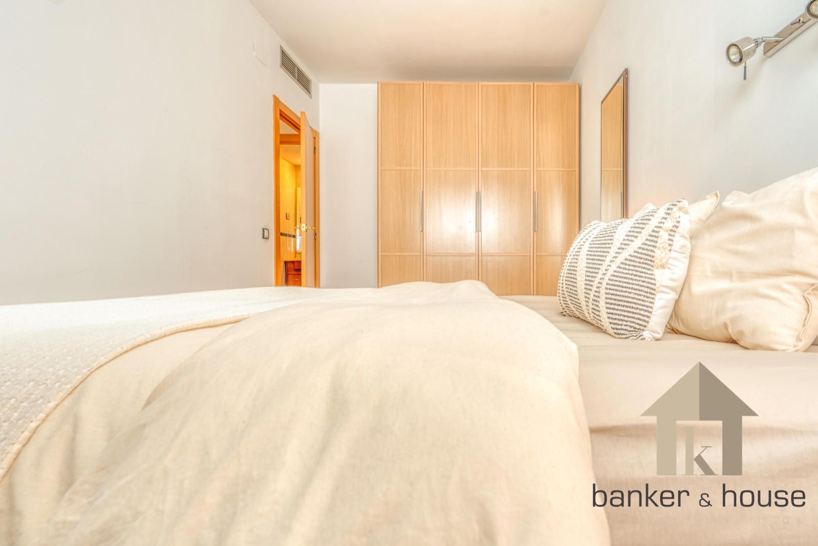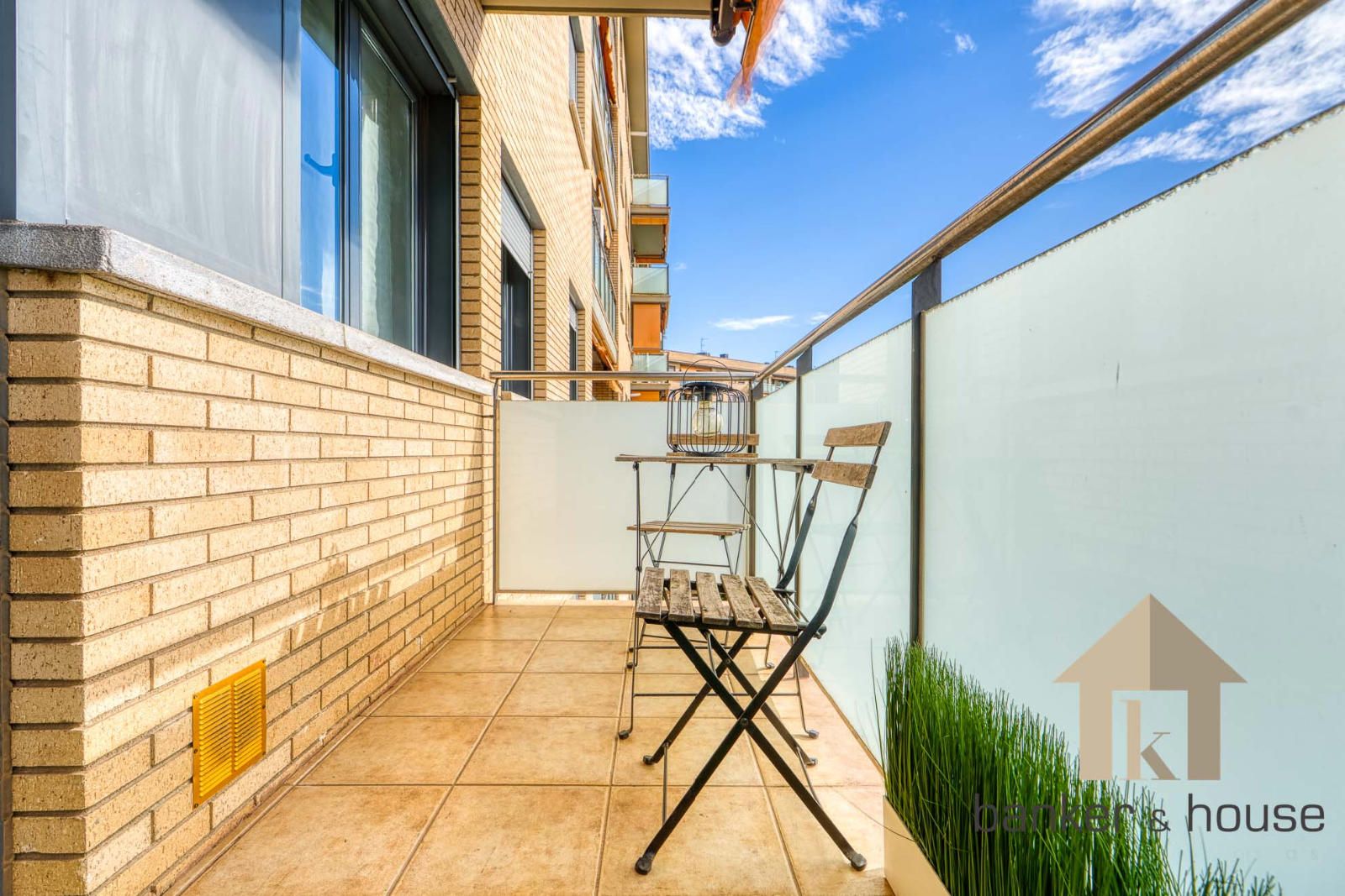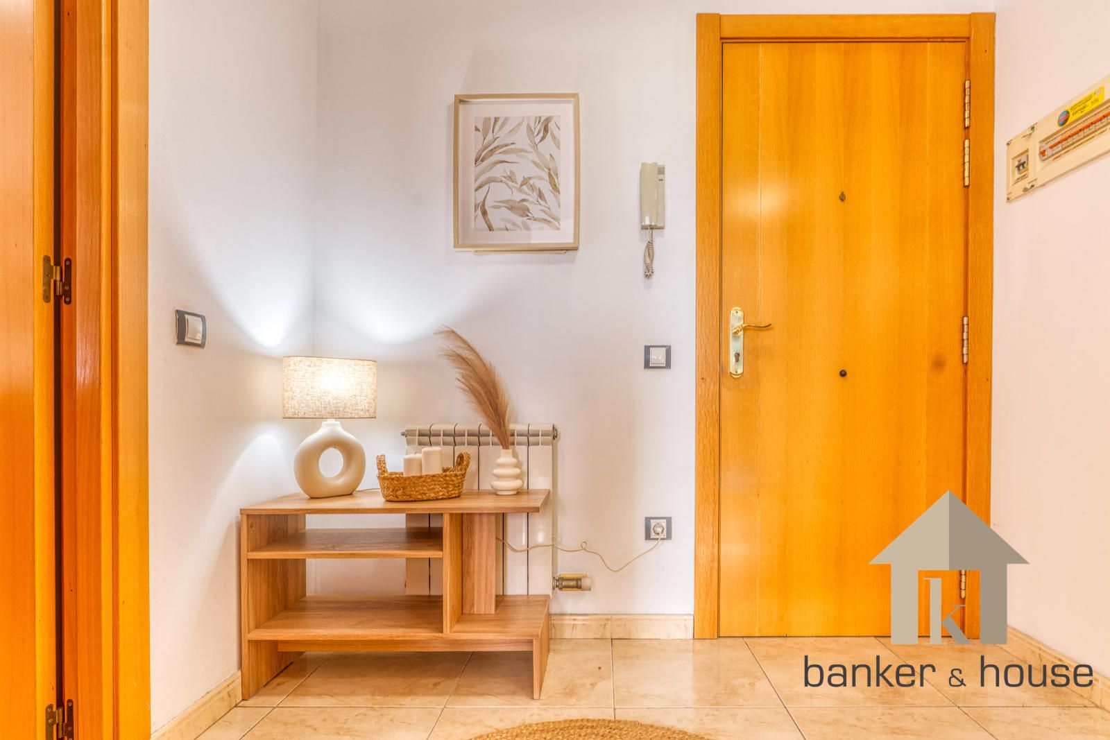 El acceso se realiza a través de un recibidor único que actúa como distribuidor central. Este espacio organiza la circulación interior y separa la zona de habitaciones del salón y la cocina, optimizando la superficie útil. Tanto el salón como las dos habitaciones se orientan al sur, lo que aporta una elevada entrada de luz natural durante la mayor parte del día.