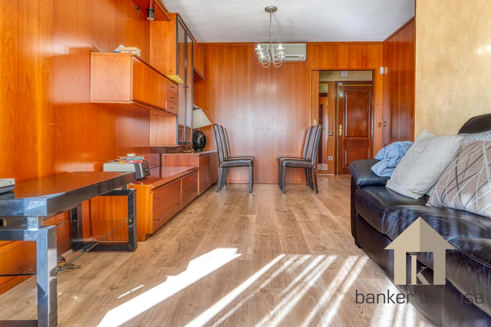 El salón comedor se sitúa junto a la entrada de la cocina. El área del salón, orientada al Este, se abre mediante un ventanal hacia el balcón-terraza de unos 7 m², con vistas despejadas sobre Collserola, Montcada, Sant Cugat y, al fondo, las montañas de Montserrat.