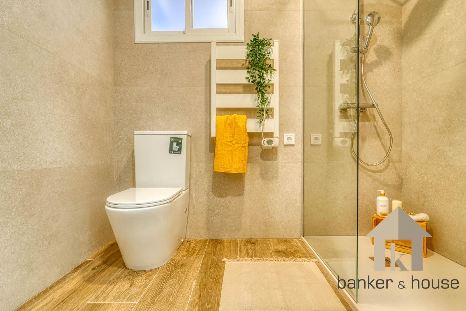 Vivienda totalmente reformada situada en el centro de Montcada, distribuida en dos plantas y con una habitación y un estudio. Se ha conservado la fachada original y parte de los elementos estructurales. El acceso es directo desde la calle a un recibidor amplio con doble puerta que conduce a un estudio ubicado en la planta inferior, espacio que aprovecha parte del hueco de la escalera y que permite su uso como despacho o zona polivalente.