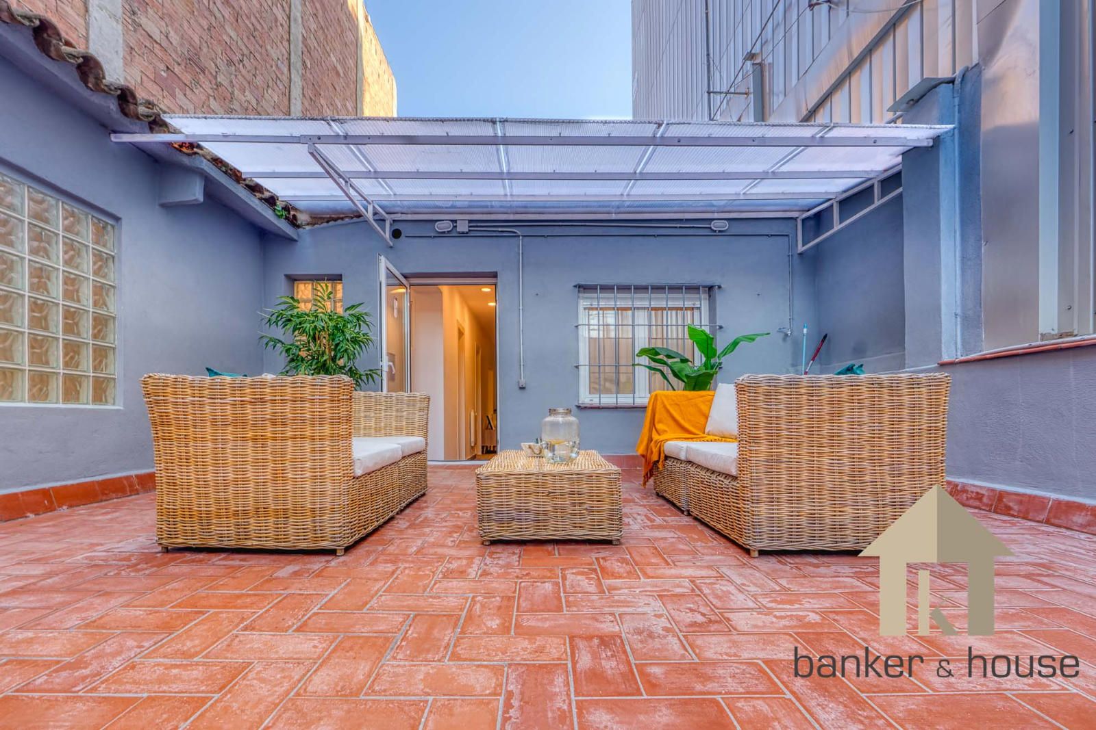 En la planta principal se encuentra una terraza de aproximadamente 30 m² orientada al oeste. Cuenta con una marquesina en PVC que genera sombra y permite configurar una zona de descanso con mobiliario exterior. Esta parte de la terraza admite cerramientos adicionales según las necesidades del futuro propietario.