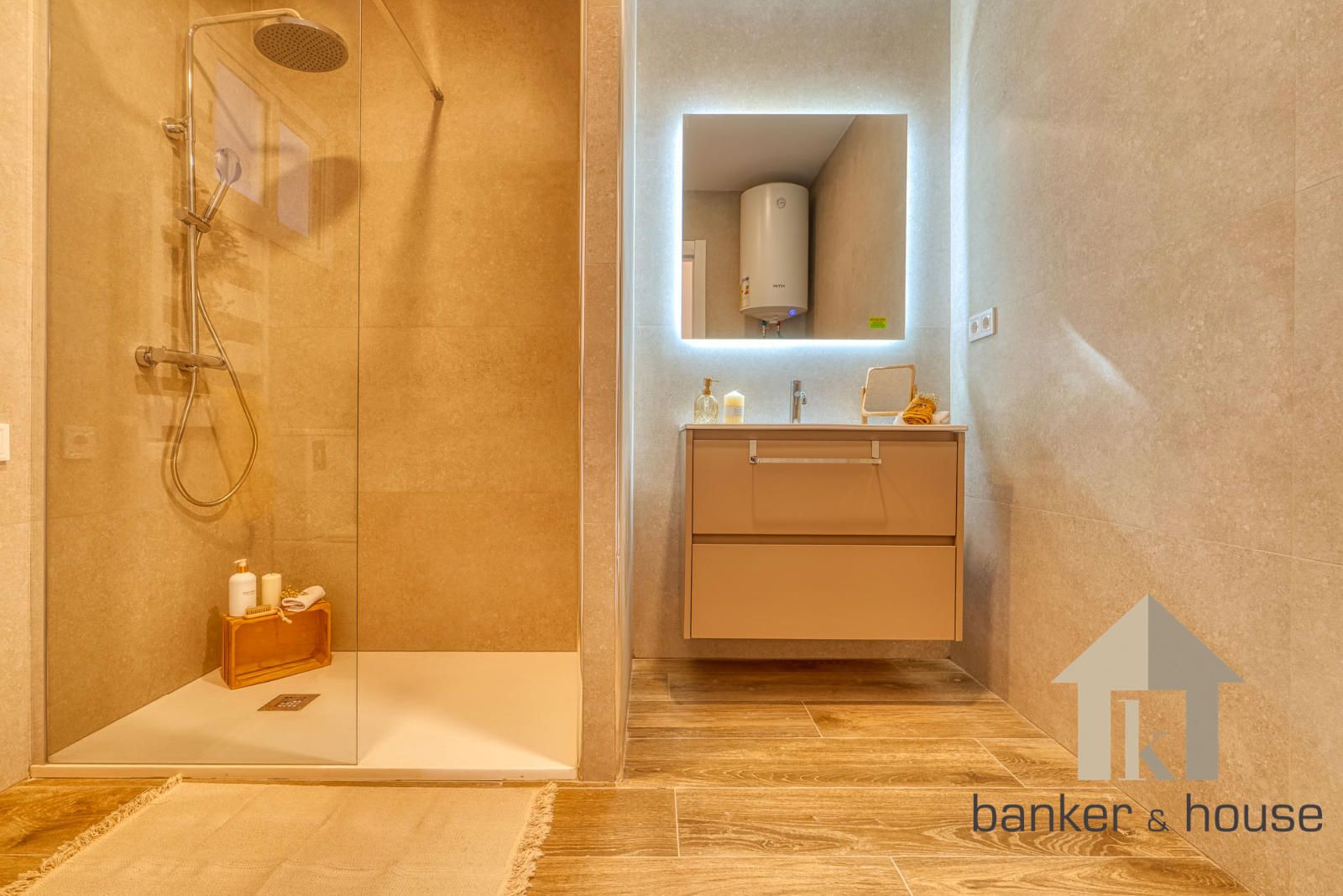 Entre los acabados y equipamientos destacan: marquesina de metacrilato en terraza, suelo porcelánico imitación madera, calefacción eléctrica, cocina de inducción, carpintería exterior de aluminio, electrodomésticos de primeras marcas, fregadero Teka, encimera de Silestone, armarios empotrados en dormitorio, puertas interiores lacadas en blanco, azulejos y alicatados cerámicos en cocina y baño. La escalera conserva la estructura original de la vivienda, actualizada en pavimento y barandilla. Dispone asimismo de puerta blindada.