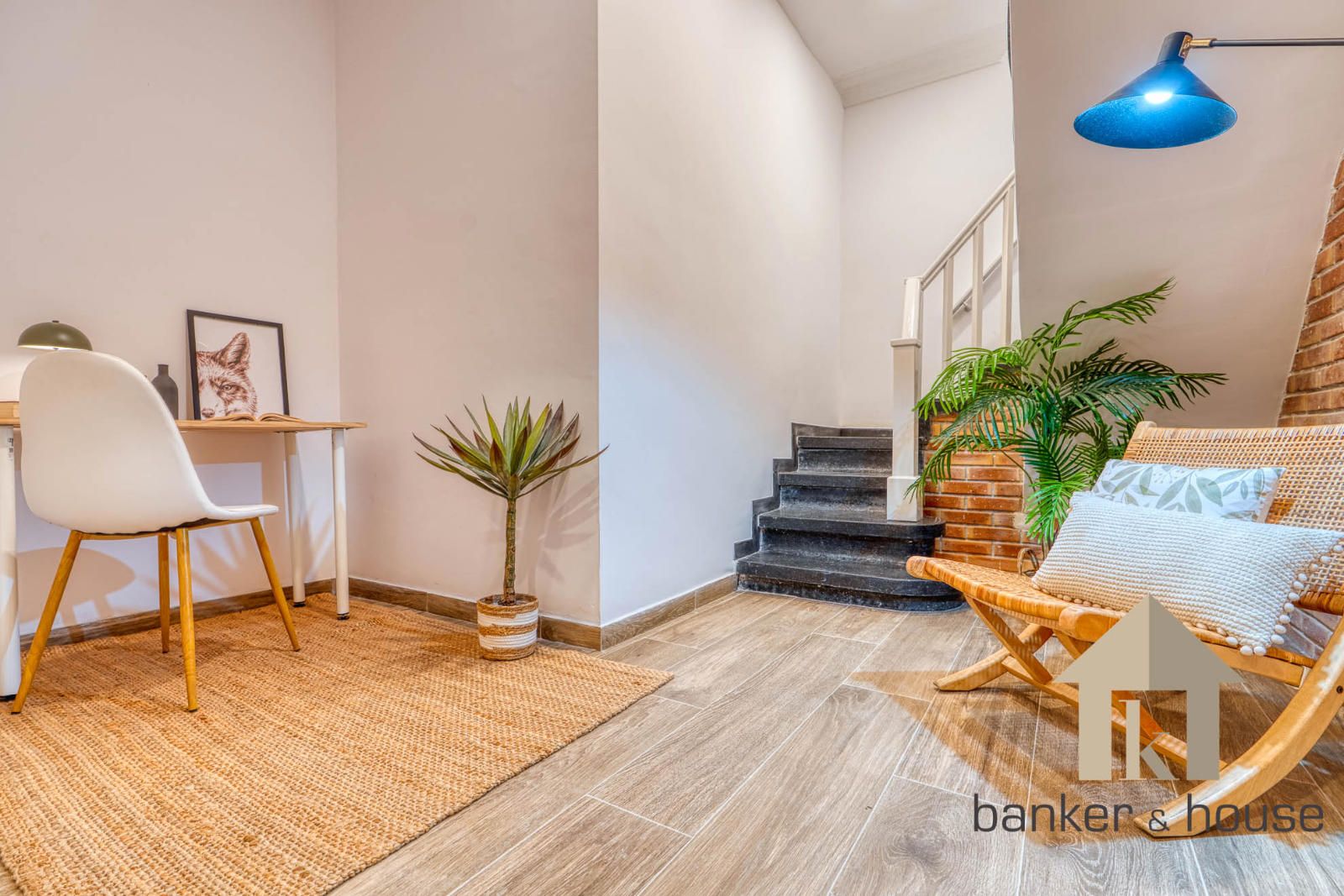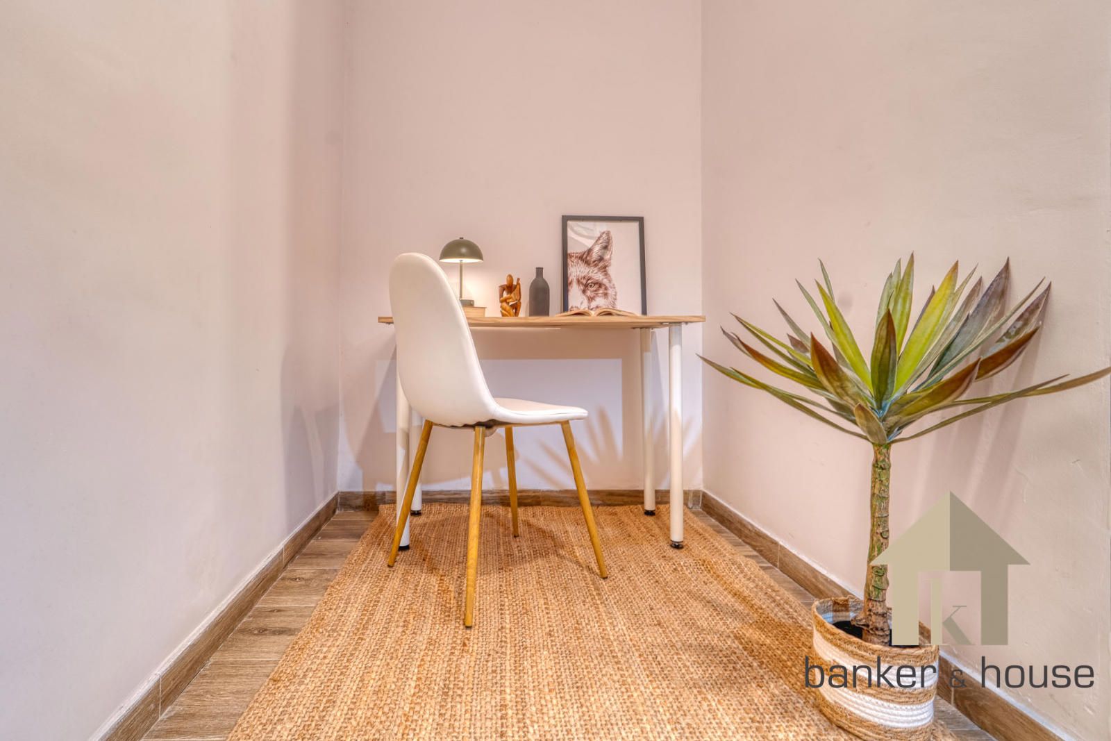 Vivienda totalmente reformada situada en el centro de Montcada, distribuida en dos plantas y con una habitación y un estudio. Se ha conservado la fachada original y parte de los elementos estructurales. El acceso es directo desde la calle a un recibidor amplio con doble puerta que conduce a un estudio ubicado en la planta inferior, espacio que aprovecha parte del hueco de la escalera y que permite su uso como despacho o zona polivalente.