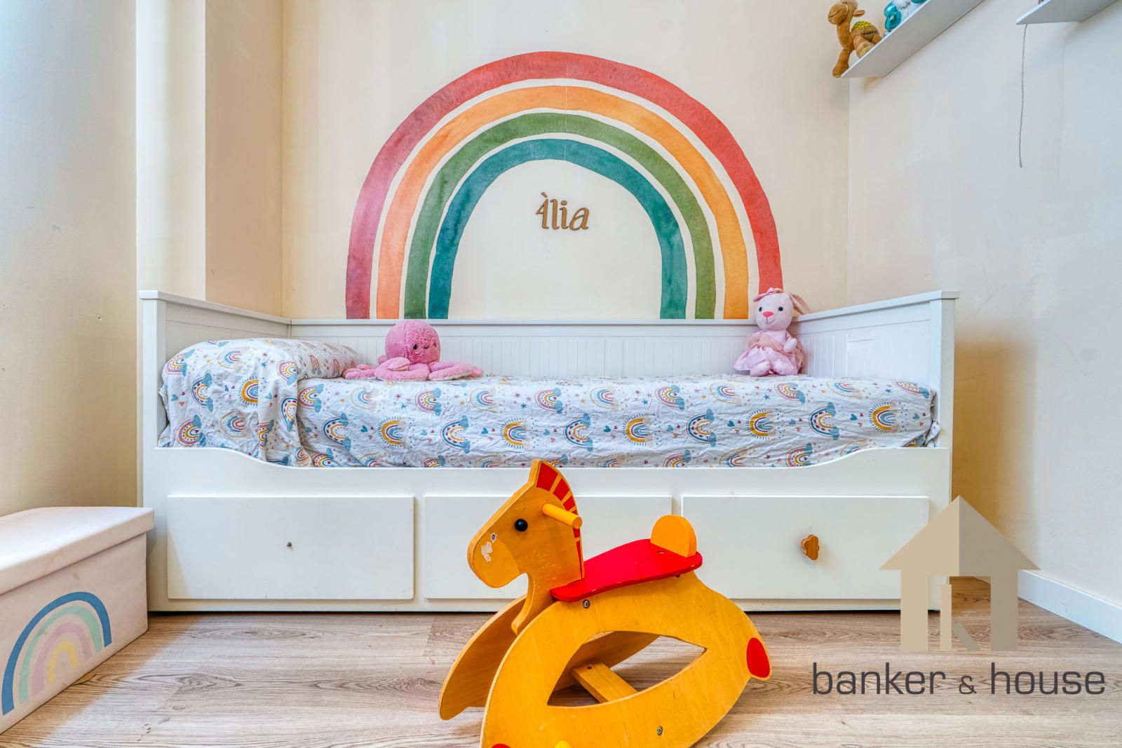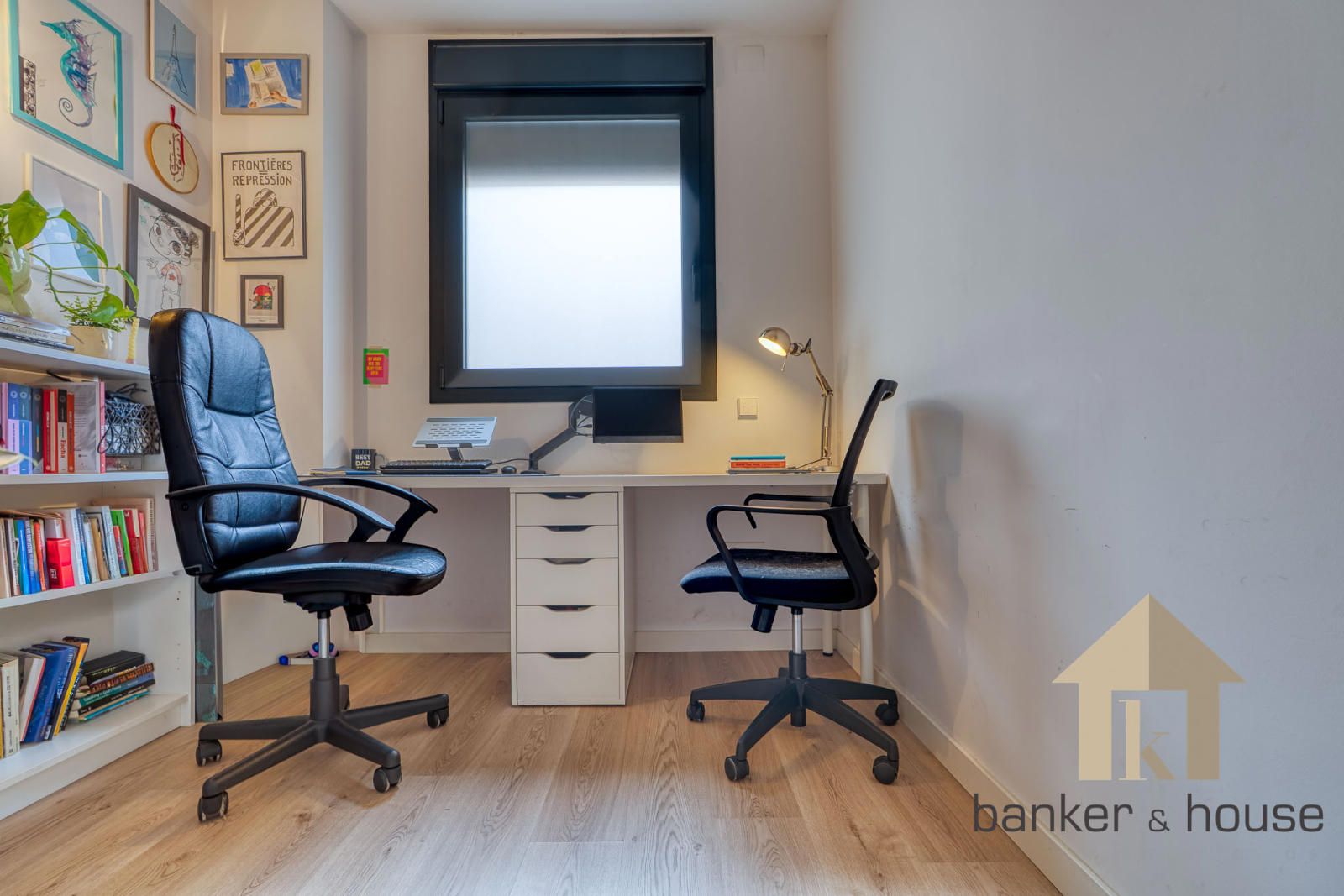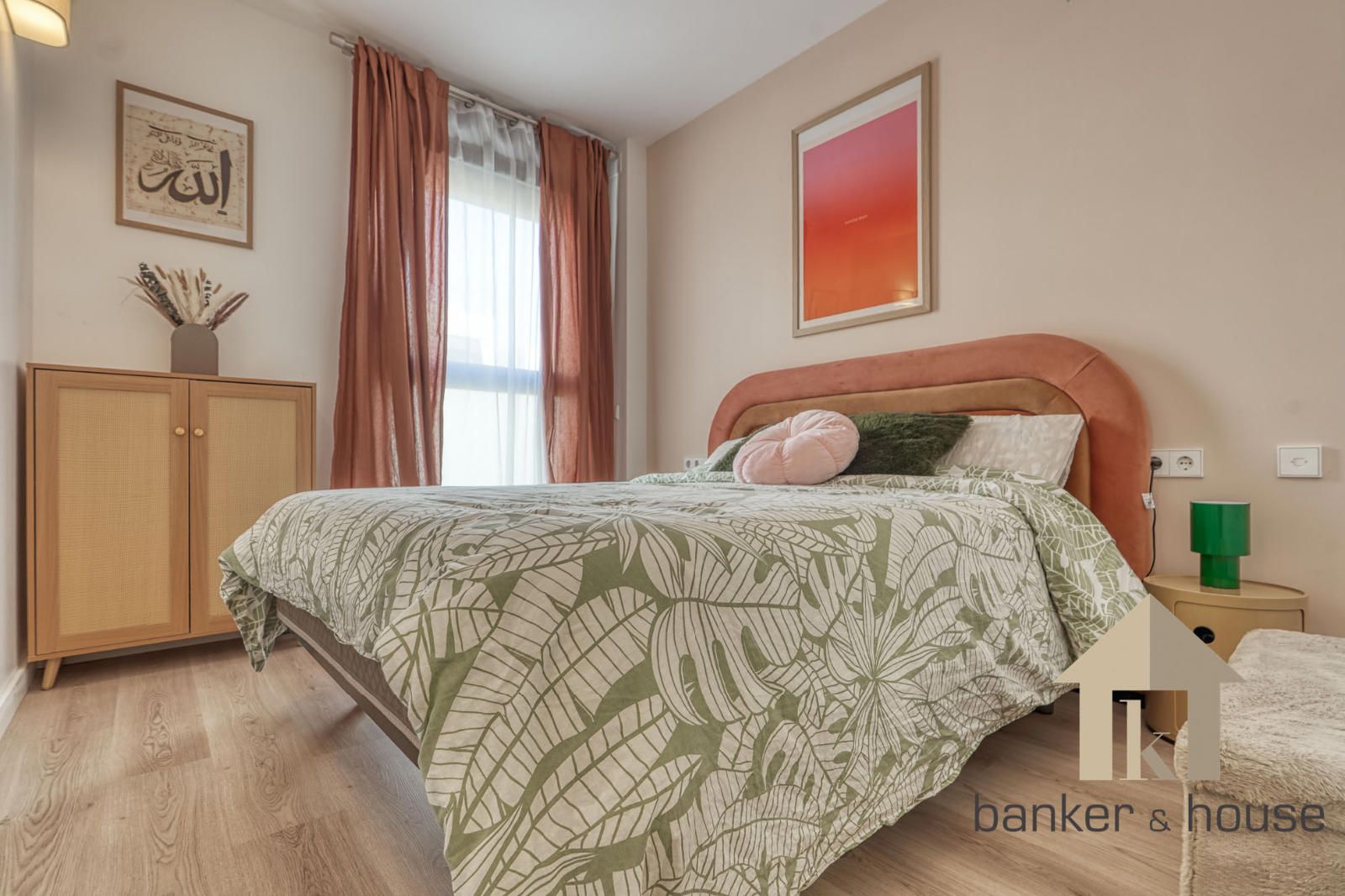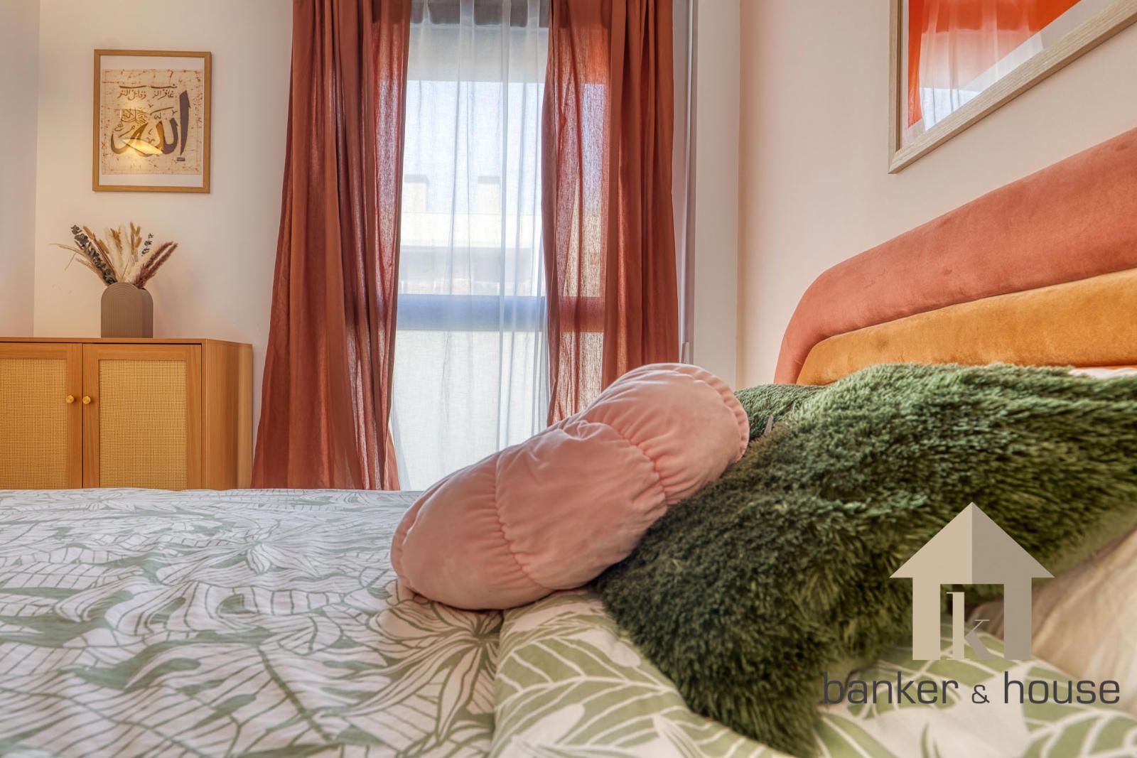 La zona de habitaciones queda separada del acceso principal y de las estancias comunes. La vivienda dispone de cuatro habitaciones, tres de ellas con armarios empotrados. La habitación principal se organiza como suite y dispone de baño incorporado. El segundo baño da servicio al resto de la vivienda. Esta parte del piso concentra las piezas de descanso en un área diferenciada del salón y la cocina, con acceso desde la distribución interior.