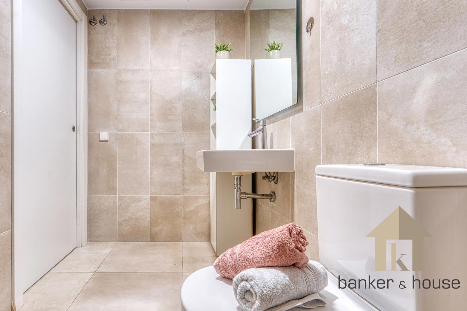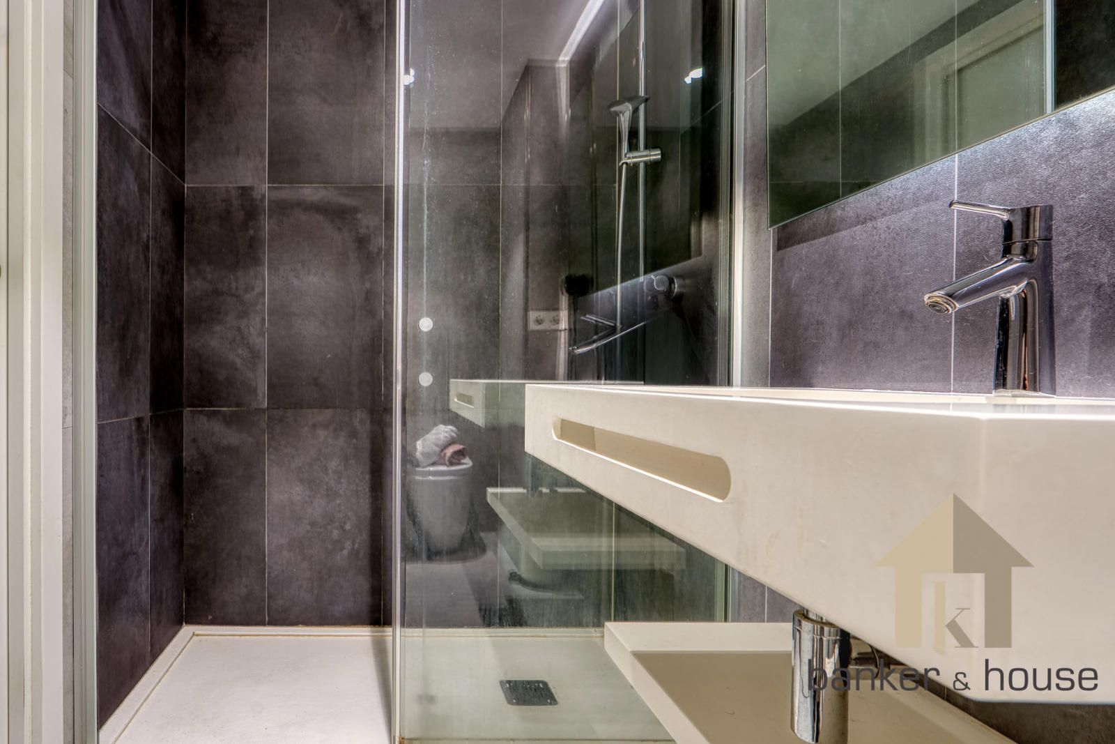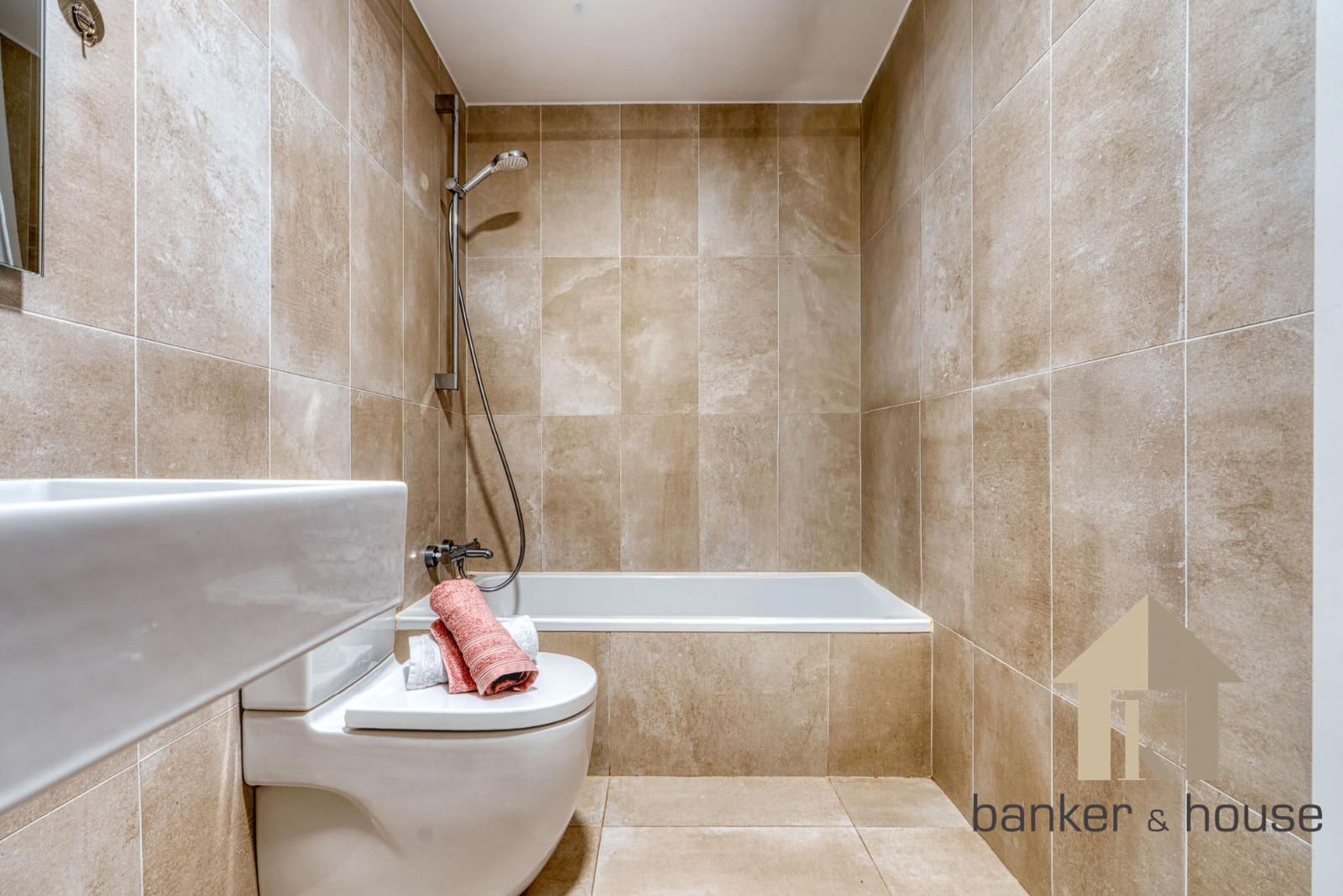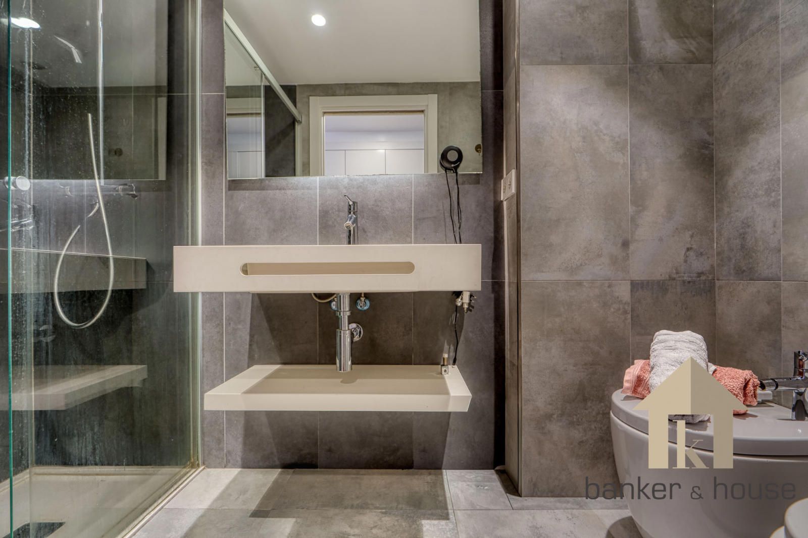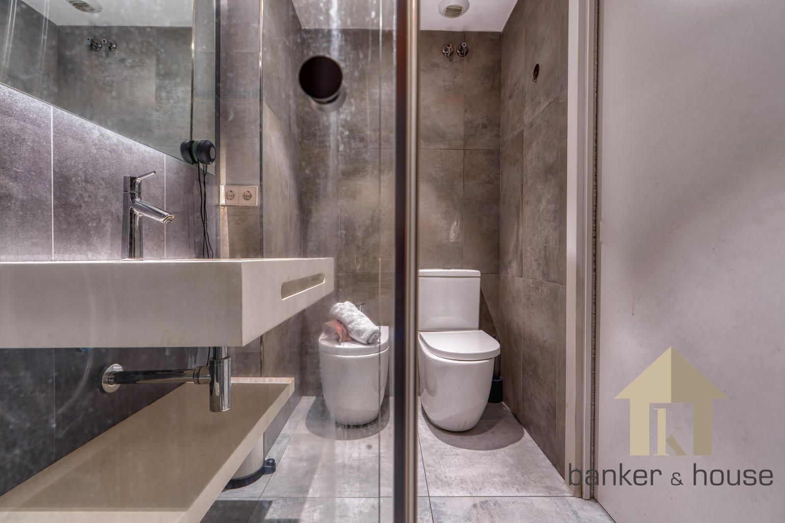 Los baños se presentan con configuraciones distintas. El baño de la suite cuenta con cuatro piezas y ducha. El segundo baño dispone de tres piezas y bañera. No se aportan más detalles sobre revestimientos o mobiliario fijo distinto del ya indicado. En el conjunto interior se incluyen también puertas lacadas en blanco, carpintería de aluminio con doble acristalamiento y sistema de calefacción y climatización por conductos mediante aerotermia.