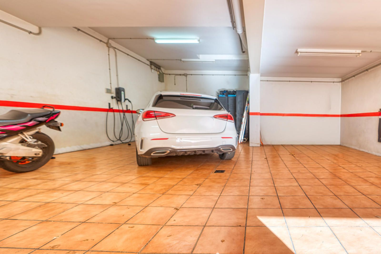En planta sótano, 84 m² destinados a garaje, despensa y trastero, con acceso mediante puerta automática.