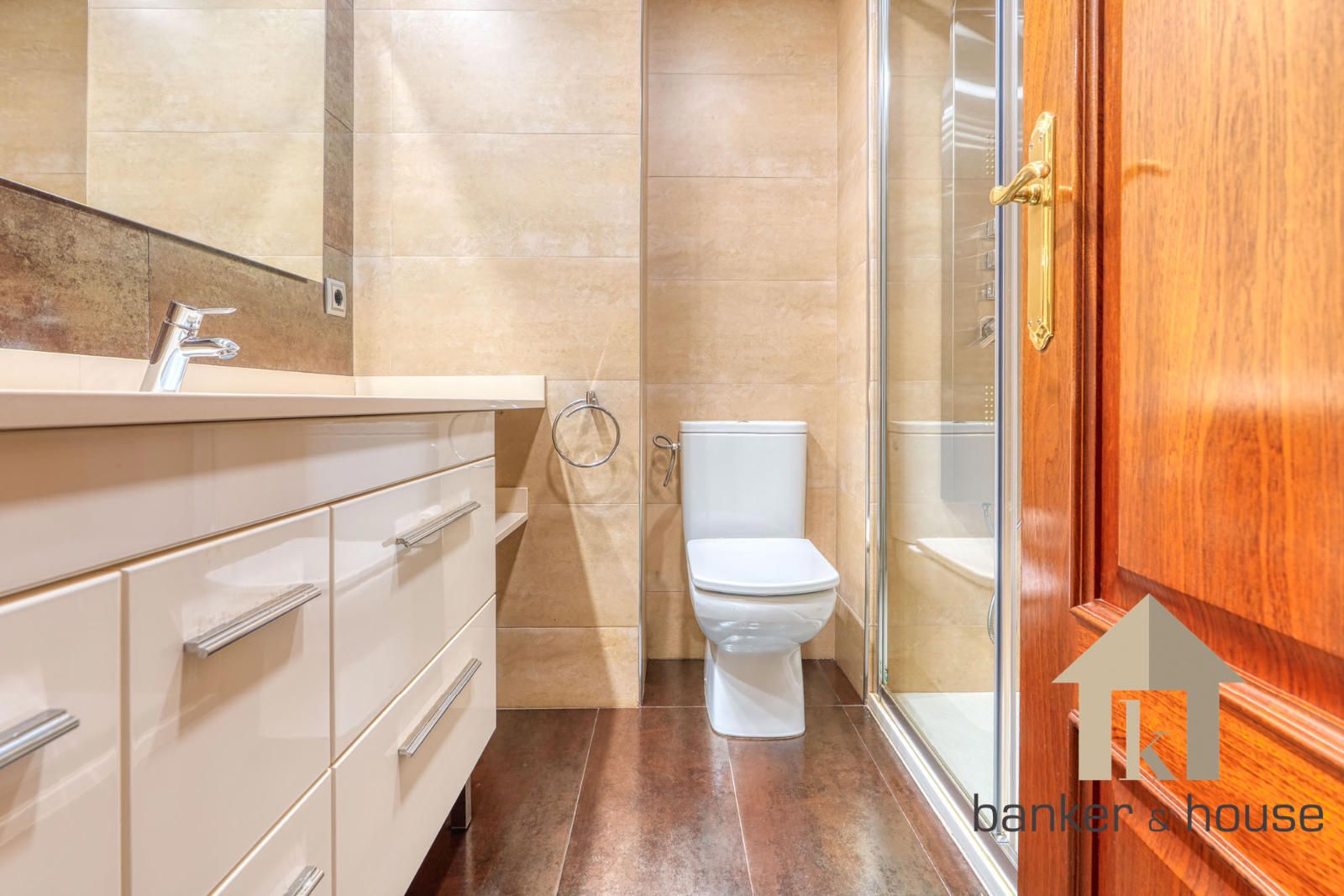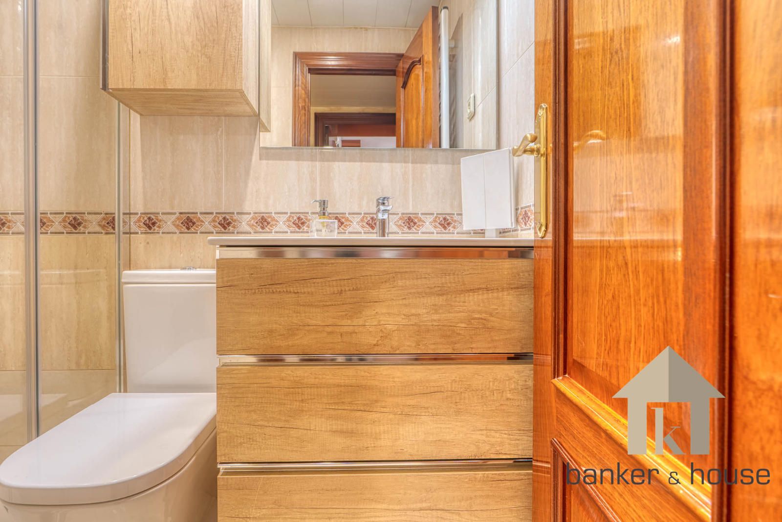 La cocina, reformada y de forma rectangular, cuenta con mobiliario a dos paredes y puerta corredera hacia el comedor. Dispone de una zona de office para desayunos o comidas diarias y al fondo un lavadero independiente donde se ubica la caldera de gas.