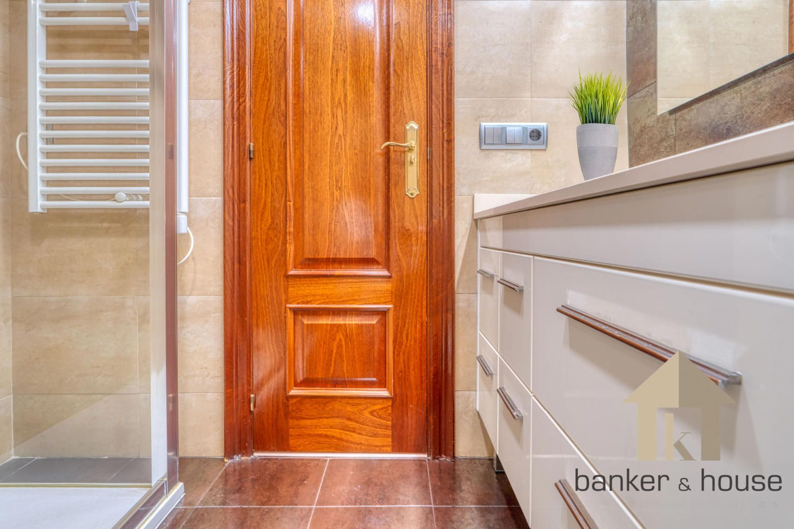 Entre los acabados se incluyen calefacción y aire acondicionado por bomba de calor, puertas de cerezo, cornisas en los techos, pavimento de parquet en la mayor parte de la vivienda, carpintería exterior de aluminio y puerta blindada.